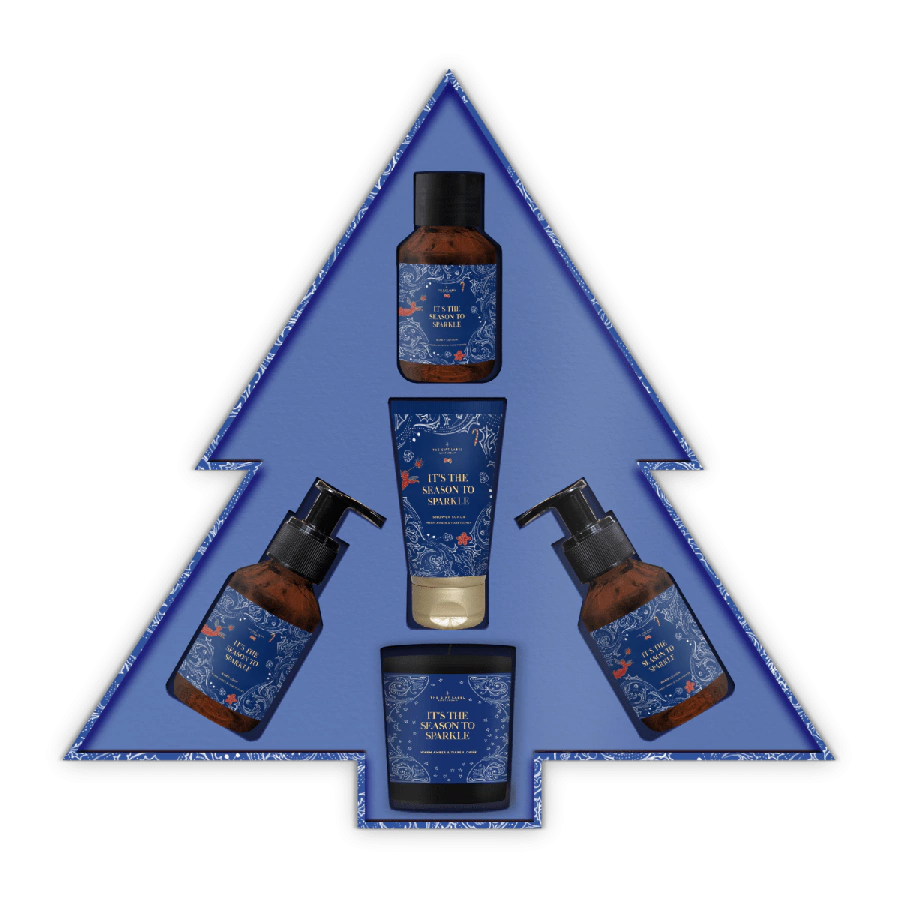 Deze box brengt de ware kerstsfeer in huis. De luxe box is gevuld met een mini handzeep, handlotion, body wash scrub, bodylotion en een kaarsje. Alle producten komen in onze heerlijke kerstgeur Warm Amber & Tiaré Flower. Happy giving!