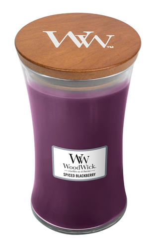 WoodWick Spiced Blackberry is een fruitige geur met als top- en middennoten zwarte bes, sinaasappelschil, kruidnagel en kaneel. De basisnoten bestaan uit vanillesuiker, tonkaboon en houttinten.