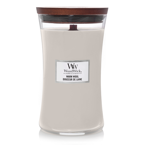 WoodWick Warm Wool Large Candle. Ontdek de aroma’s van warme, zachte wol en wilde bloemen en breng een finishing touch in je interieur! WoodWick Warm Wool is een bloemige geur. De top- en middennoten bestaan uit citrusbloesems, sinaasappel, lelie, jasmijn en viool. In de basisnoten kun je sandelhout, patchouli en muskus terugvinden.