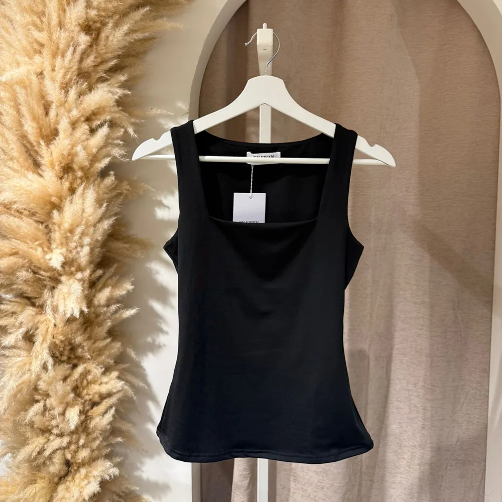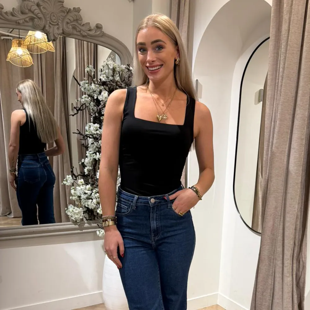 Deze fijne mouwloze top is een must-have die niet mag ontbreken in je garderobe. De top heeft een stijlvolle vierkante hals en is gemaakt van een gladde travel-stof. Dankzij de stretch sluit hij mooi aan op je lichaam. Shop hem nu!
