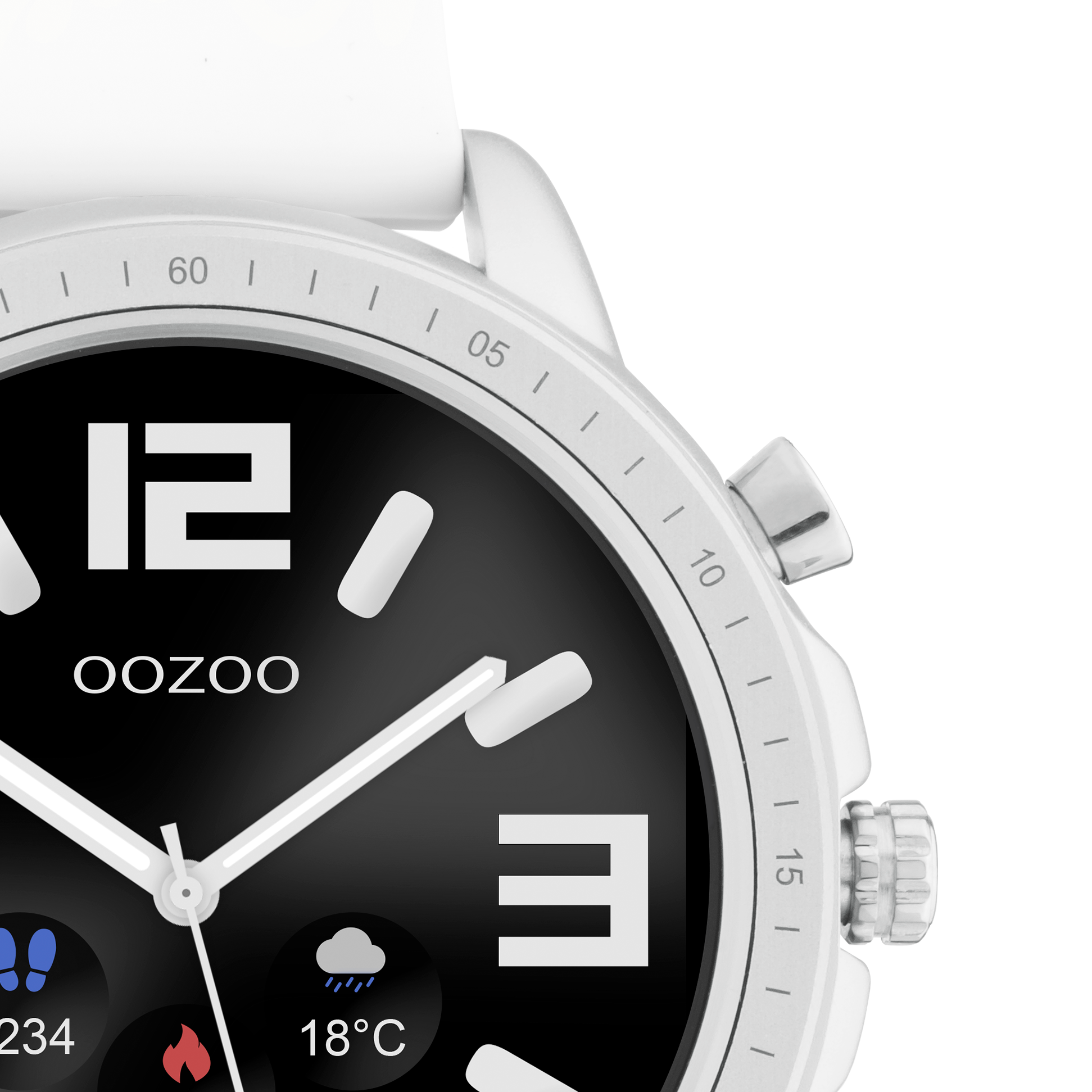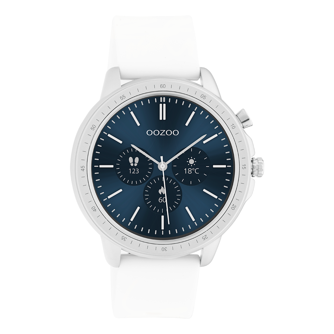 Get smart with us! Deze unisex smartwatch van OOZOO’s digitale collectie heeft een ronde horlogekast. De Q00310 is een van de meest elegante designs uit onze OOZOO Smartwatches collectie met een 45 mm zilverkleurige metalen horlogekast. Dit essentiële accessoire heeft een mooie matte witte rubber band met witte gesp. Je kunt kiezen uit de veel verschillende stijlen van kleurrijke digitale OOZOO wijzerplaten. Het mineraalglas ligt in een 11,4 mm dikke metalen horlogekast en heeft een kunststof backplate en is nikkel-safe. Bij dit product wordt een oplader meegeleverd. Deze smartwatch is IP67 gecertificeerd en wordt gedekt door een garantie van 2 jaar (zie sectie 3 van onze Refund, shipping & warranty policy).