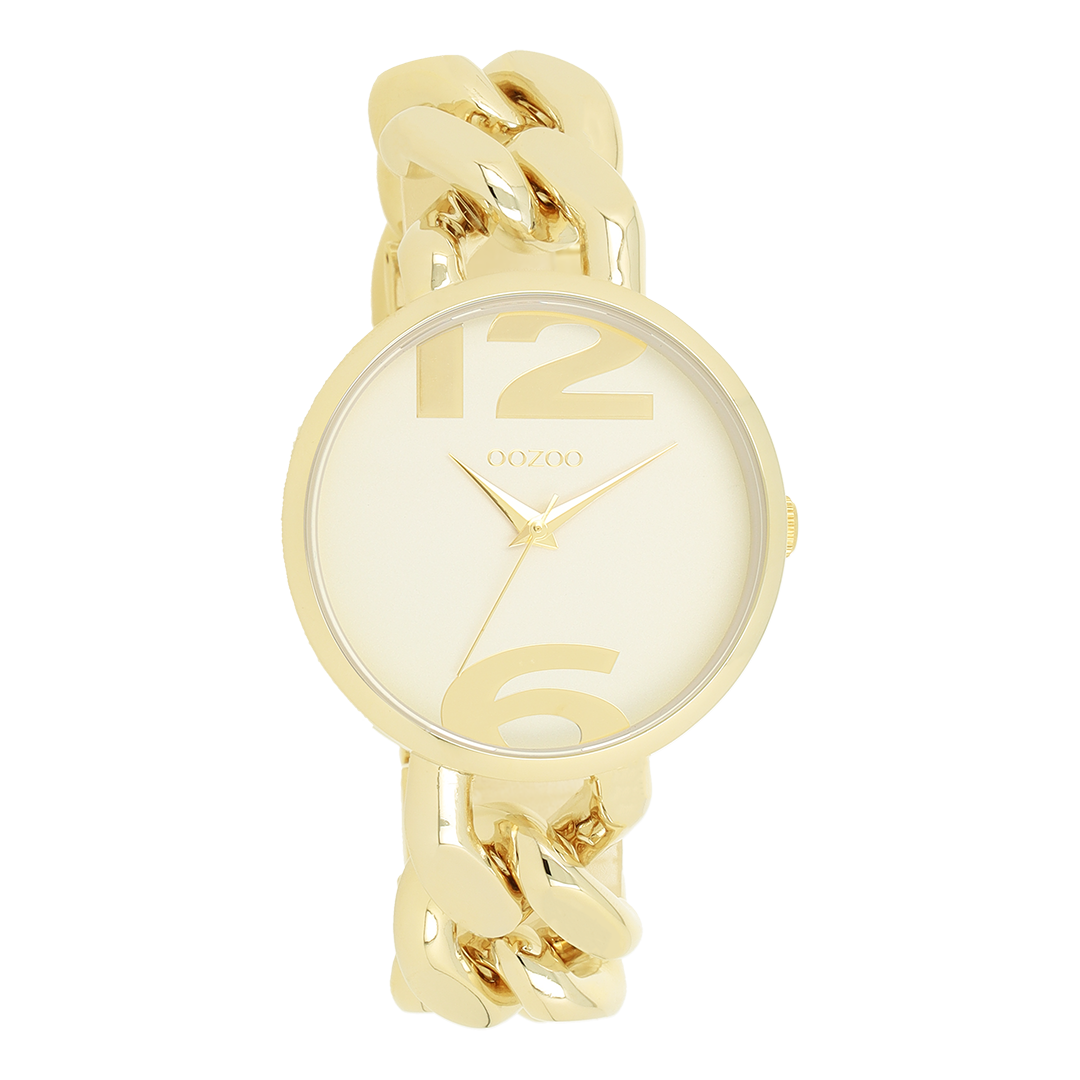 Goudkleurige horloge met goudkleurige grove schakelarmband