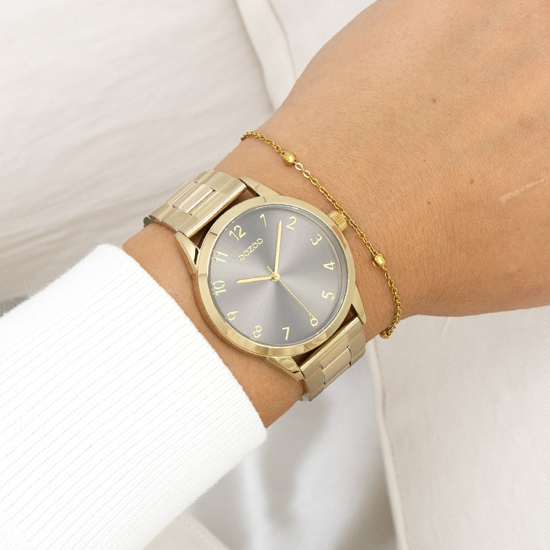 Goudkleurige horloge met goudkleurige roestvrijstalen armband