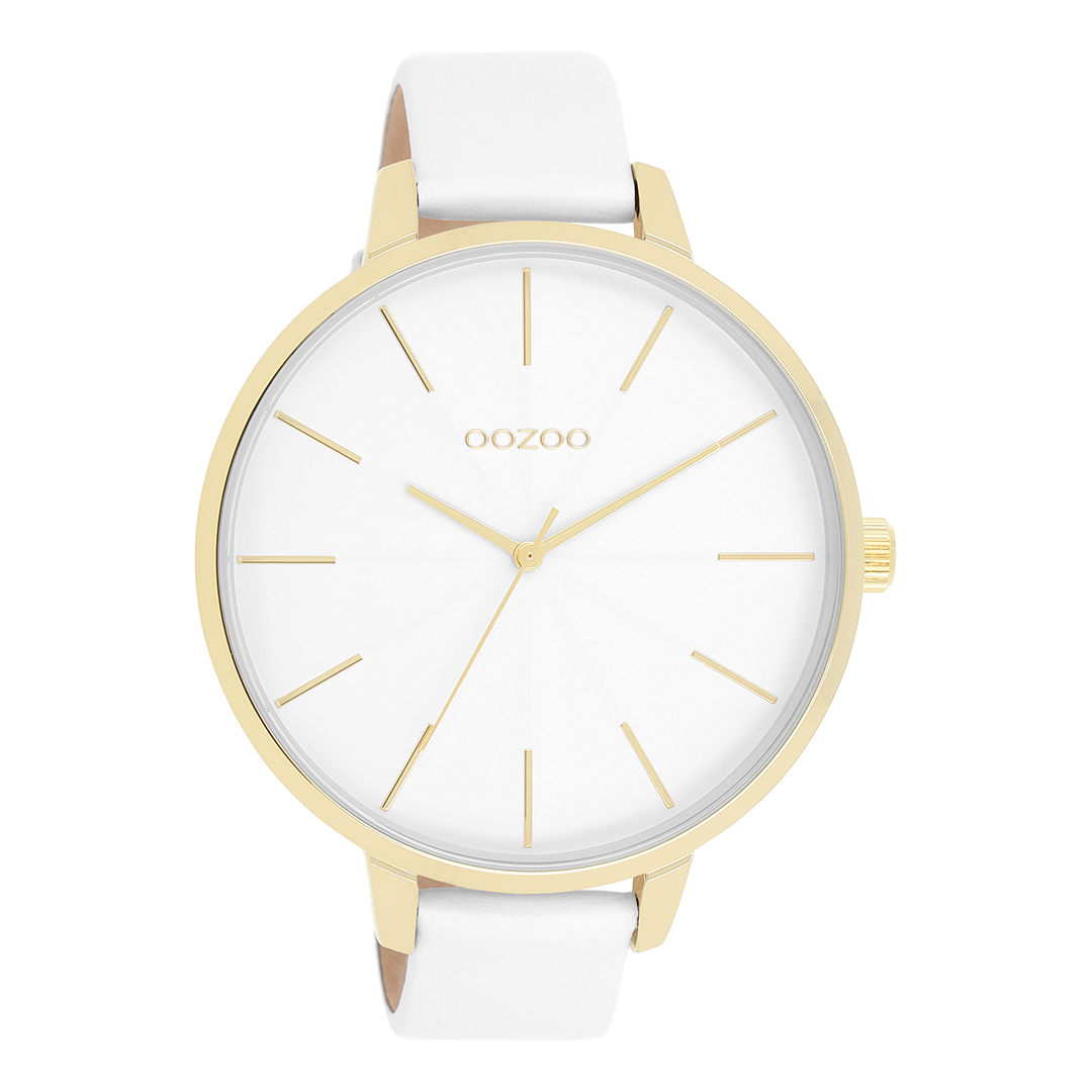 Val op met dit prachtige ronde dames design uit de trendy OOZOO Timepieces collectie. De C11346 heeft een witte leren band en 48 mm goudkleurige metalen horlogekast. Maak een fashion statement met deze witte sunray wijzerplaat, goudkleurige strepen tijdsaanduidingen en bijpassende wijzers. Dit horloge is een musthave voor jouw garderobe en heeft een mineraalglas, stainless steel achterplaat en is nikkel-safe. Dit horloge heeft een 2ATM Japans uurwerk en wordt gedekt door een garantie van 2 jaar (zie sectie 3 van onze Refund, shipping & warranty policy).