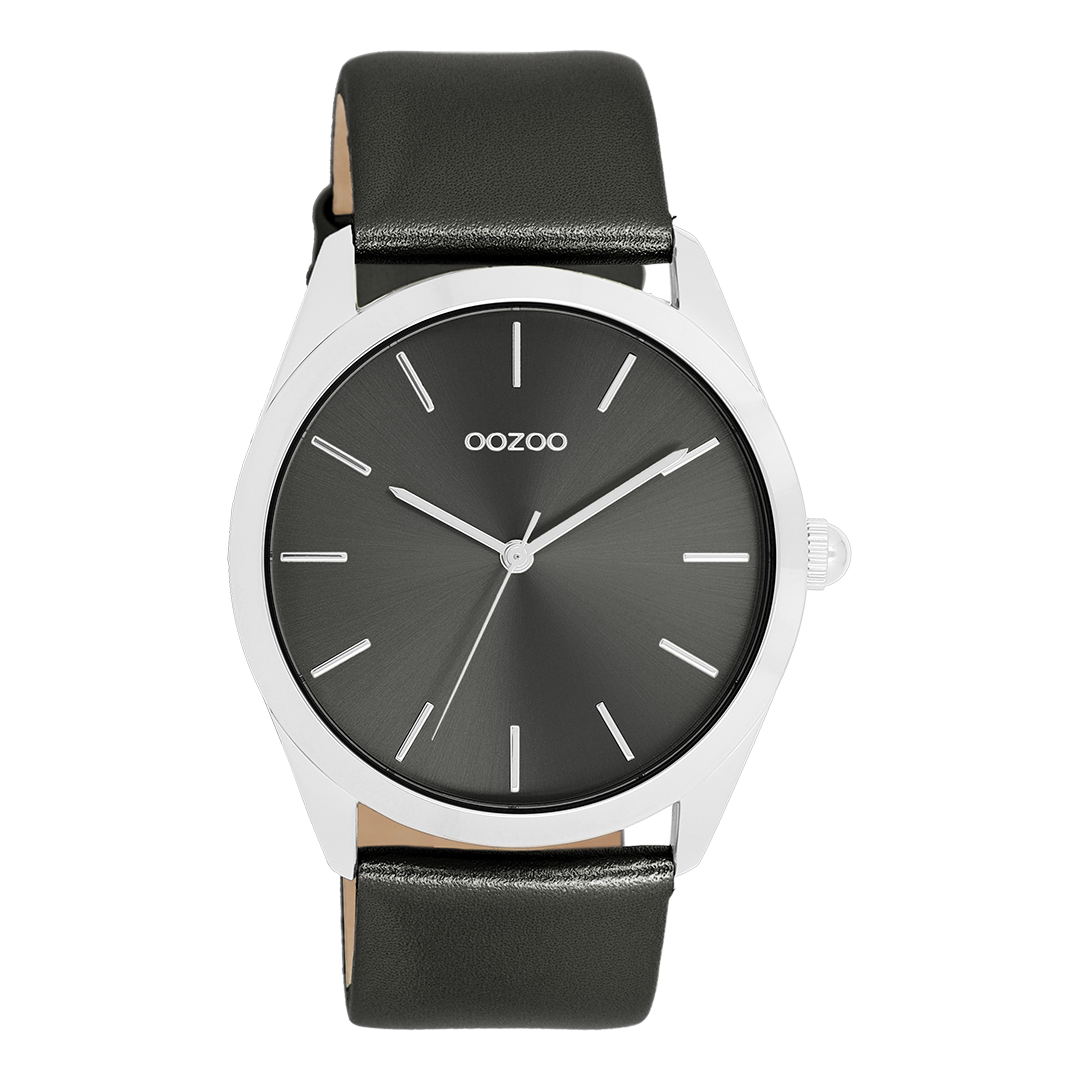 Val op met dit prachtige ronde dames design uit de trendy OOZOO Timepieces collectie. De C11338 heeft een metaal look donker grijze leren band en 40 mm zilverkleurige metalen horlogekast. Maak een fashion statement met deze donker grijze sunray wijzerplaat, zilverkleurige strepen tijdsaanduidingen en bijpassende wijzers. Dit horloge is een musthave voor jouw garderobe en heeft een mineraalglas, stainless steel achterplaat en is nikkel-safe. Dit horloge heeft een 2ATM Japans uurwerk en wordt gedekt door een garantie van 2 jaar (zie sectie 3 van onze Refund, shipping & warranty policy).
