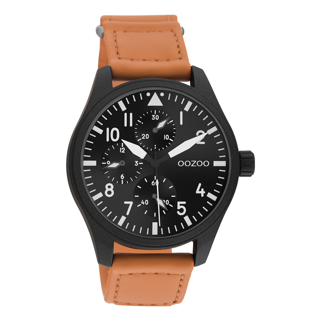 Val op met dit prachtige ronde heren design uit de trendy OOZOO Timepieces collectie. De C11007 heeft een gestikte oranje klittenband polsband en 42 mm zwarte matte horlogekast. Maak een fashion statement met deze zwarte sunray wijzerplaat, witte strepen en cijfers tijdsaanduidingen en bijpassende wijzers. Dit horloge is een musthave voor jouw garderobe en heeft een mineraalglas, stainless steel achterplaat en is nikkel-safe. Dit horloge heeft een 2 Japans uurwerk en wordt gedekt door een garantie van 2 jaar (zie sectie 3 van onze Refund, shipping & warranty policy).