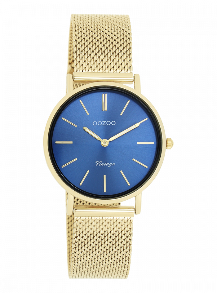 Verfijning en elegantie zijn de twee sleutelelementen van deze prachtige OOZOO Vintage series. Dit klassieke ronde model past bij iedereen. Dit unisex horloge is de perfecte combinatie van comfort en fashion met zijn 32 mm goudkleurige metalen horlogekast en blauwe sunray wijzerplaat. De goudkleurige metalen mesh armband maakt dit horloge tot een all-time classic welke je bij iedere gelegenheid kunt dragen. De wijzerplaat heeft goudkleurige strepen tijdsaanduidingen en bijpassende kleurige wijzers. Dit model is een must-have voor jouw dagelijkse garderobe. Het mineraalglas ligt in een 6,9 mm dunne metalen horlogekast met IP-plating. De C20292 heeft een stainless steel achterplaat en is nikkel-safe. Dit horloge heeft een 2 Japanese uurwerk en wordt gedekt door een garantie van 2 jaar (zie sectie 3 van onze Refund, shipping & warranty policy).