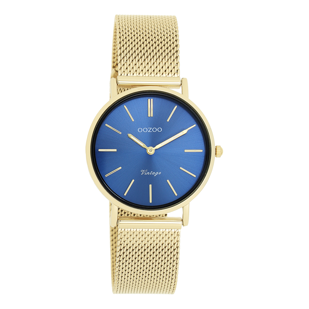 Goudkleurige horloge met goudkleurige metalen mesh armband