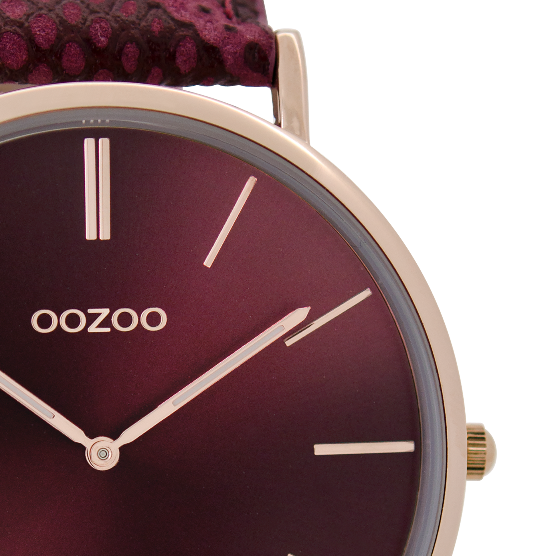 Rosé goudkleurige horloge met bordeaux rode leren band
