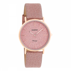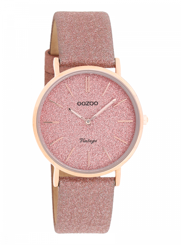 De klassieke look blijft centraal staan in deze trendy serie en daarom is dit OOZOO vintage ronde design met een speelse knipoog dé musthave van het seizoen! Dit dames horloge is de perfecte combinatie van comfort en fashion met zijn 32 mm rosé goudkleurige metalen horlogekast en oud roze met glitter wijzerplaat. De wijzerplaat heeft rosé goudkleurige strepen tijdsaanduidingen en bijpassende kleurige wijzers. De oud roze glitter leren band maakt dit horloge tot een trendy accessoire dat je elke dag kunt dragen. Dit horloge voegt de sprankeling toe aan je outfit. Het mineraalglas ligt in een 6,9 mm dunne metalen horlogekast met IP-plating. De C20201 heeft een stainless steel achterplaat en is nikkel-safe. Dit horloge heeft een 2 Japans uurwerk en wordt gedekt door een garantie van 2 jaar (zie sectie 3 van onze Refund, shipping & warranty policy).