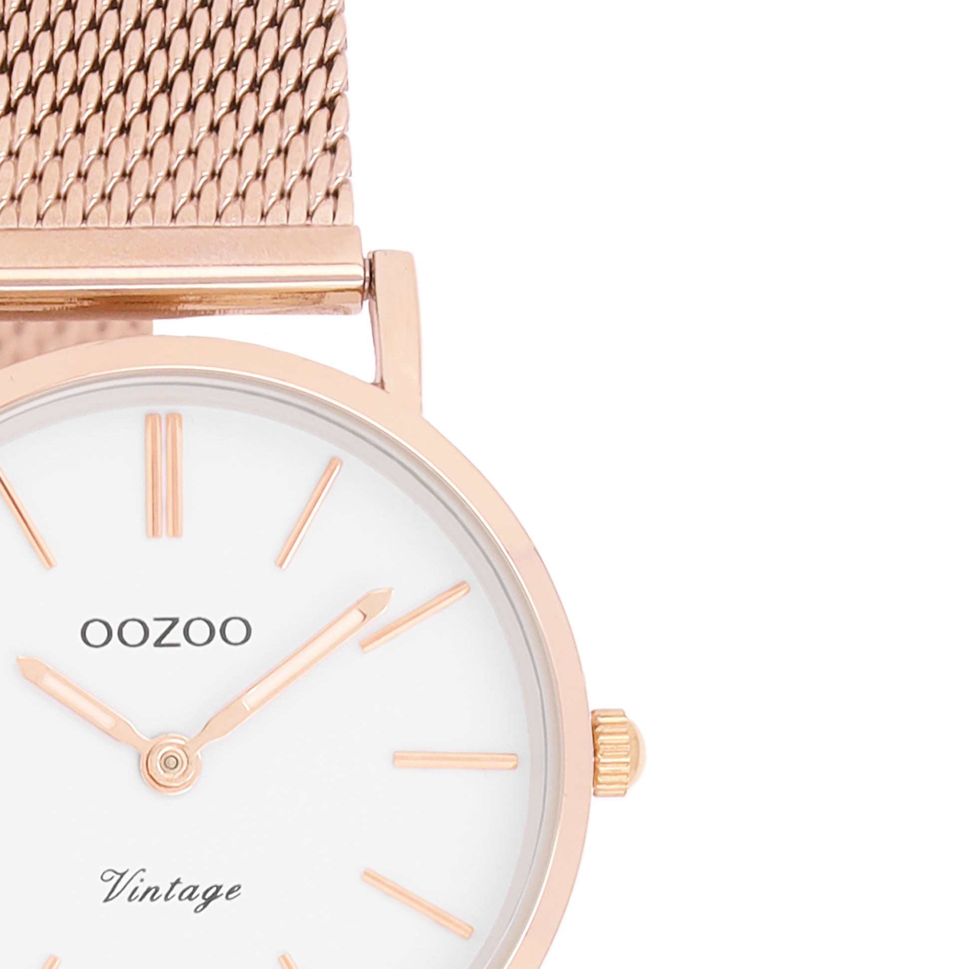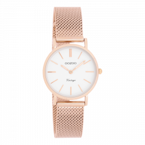 Rosé goudkleurige horloge met rosé goudkleurige metalen mesh armband