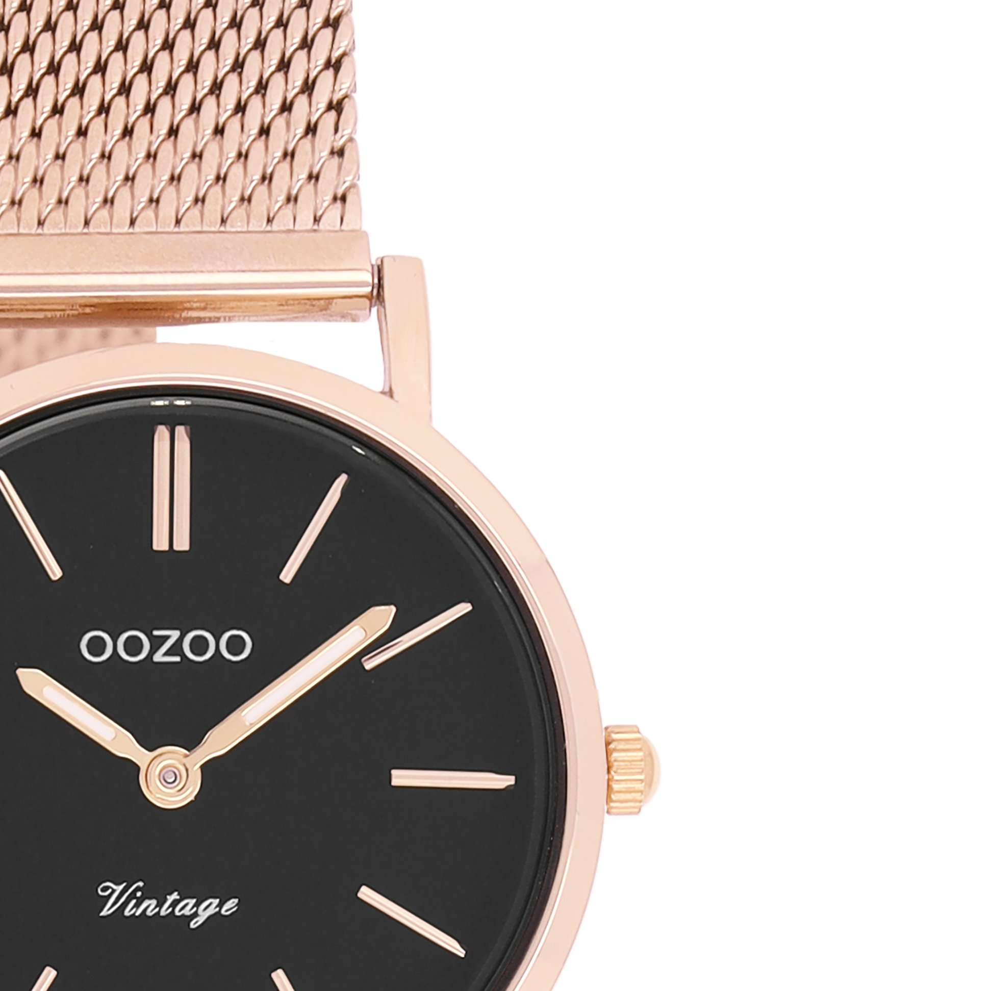 Rosé goudkleurige horloge met rosé goudkleurige metalen mesh armband