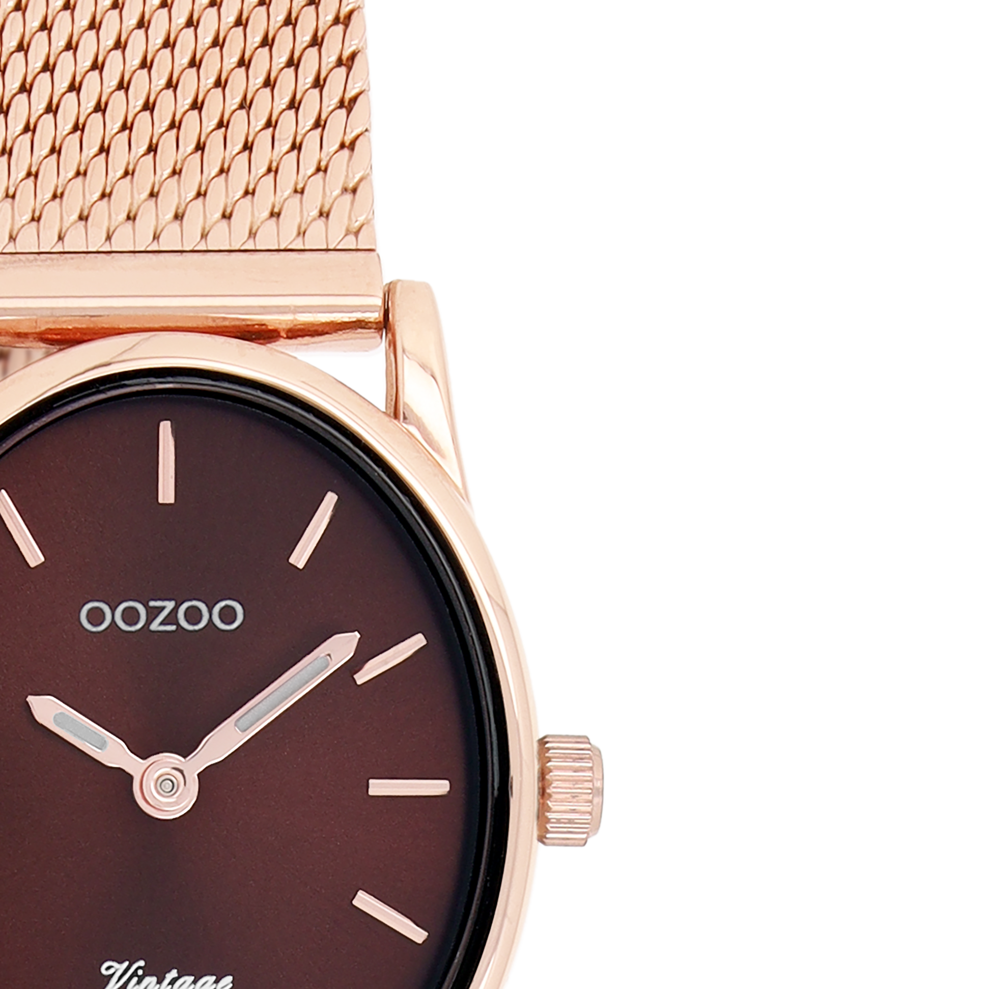 Rosé goudkleurige horloge met rosé goudkleurige metalen mesh armband