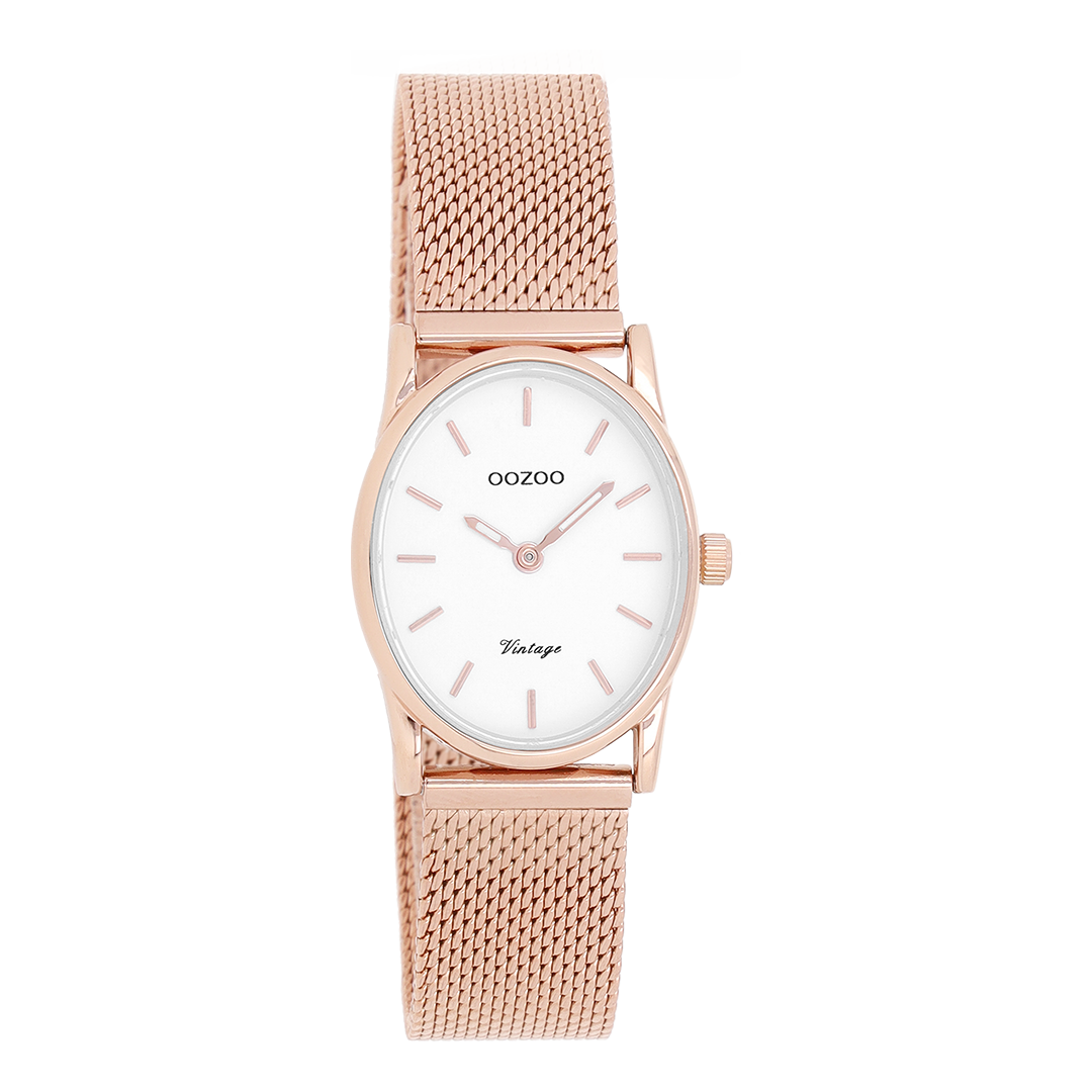 Verfijning en elegantie zijn de twee sleutelelementen van deze prachtige OOZOO Vintage series. Dit klassieke ovale model past bij iedereen. Dit dames horloge is de perfecte combinatie van comfort en fashion met zijn 28×22,5 mm rosé goudkleurige metalen horlogekast en witte wijzerplaat. De rosé goudkleurige metalen mesh armband maakt dit horloge tot een all-time classic welke je bij iedere gelegenheid kunt dragen. De wijzerplaat heeft rosé goudkleurige strepen tijdsaanduidingen en bijpassende kleurige wijzers. Dit model is een must-have voor jouw dagelijkse garderobe. Het mineraalglas ligt in een 6,9 mm dunne metalen horlogekast met IP-plating. De C10969 heeft een stainless steel achterplaat en is nikkel-safe. Dit horloge heeft een 2 Japans uurwerk en wordt gedekt door een garantie van 2 jaar (zie sectie 3 van onze Refund, shipping & warranty policy).