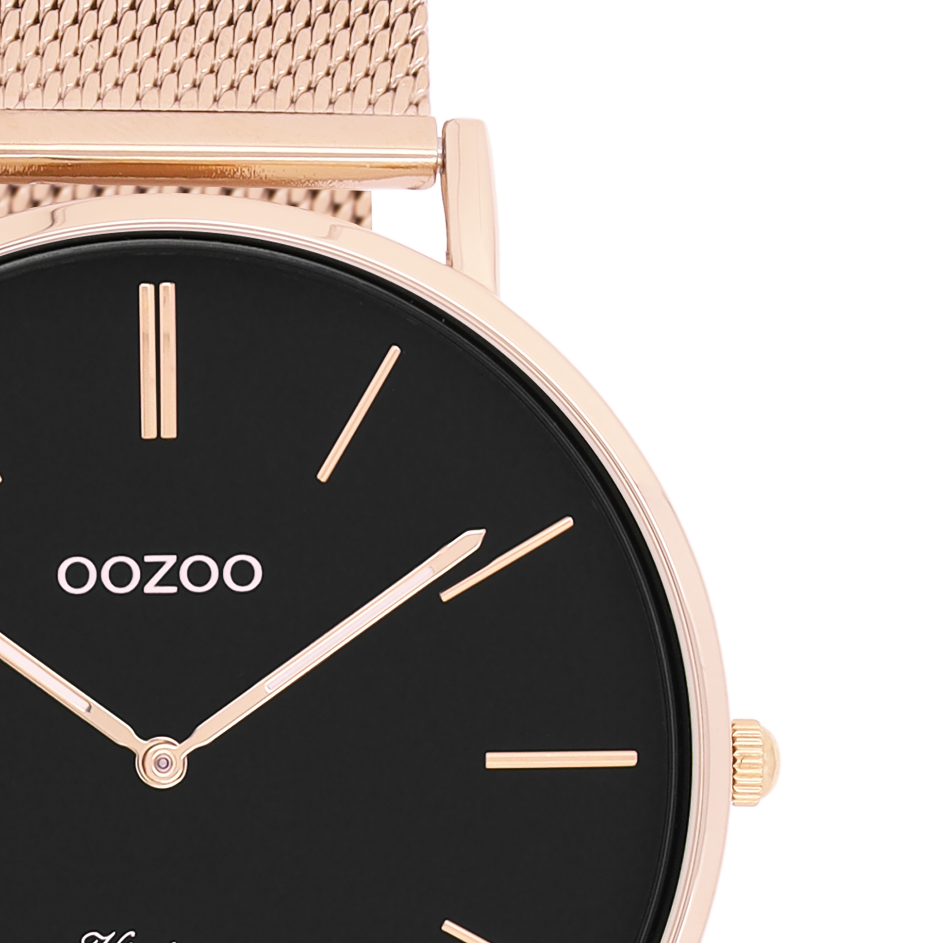 Rosé goudkleurige horloge met rosé goudkleurige metalen mesh armband