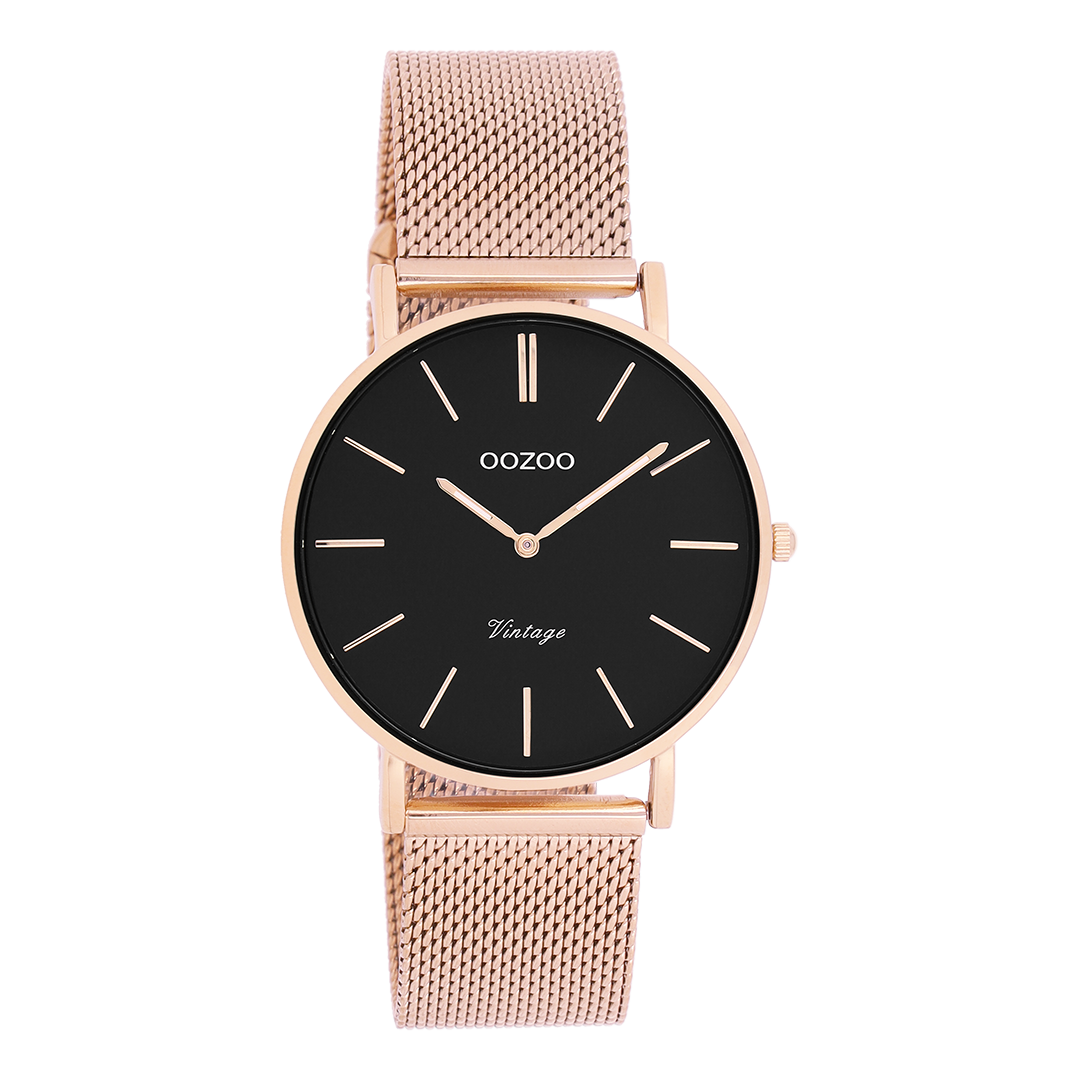 Verfijning en elegantie zijn de twee sleutelelementen van deze prachtige OOZOO Vintage series. Dit klassieke ronde model past bij iedereen. Dit unisex horloge is de perfecte combinatie van comfort en fashion met zijn 36 mm rosé goudkleurige metalen horlogekast en zwarte wijzerplaat. De rosé goudkleurige metalen mesh armband maakt dit horloge tot een all-time classic welke je bij iedere gelegenheid kunt dragen. De wijzerplaat heeft rosé goudkleurige strepen tijdsaanduidingen en bijpassende kleurige wijzers. Dit model is een must-have voor jouw dagelijkse garderobe. Het mineraalglas ligt in een 6,9 mm dunne metalen horlogekast met IP-plating. De C9926 heeft een stainless steel achterplaat en is nikkel-safe. Dit horloge heeft een 2 Japans uurwerk en wordt gedekt door een garantie van 2 jaar (zie sectie 3 van onze Refund, shipping & warranty policy).