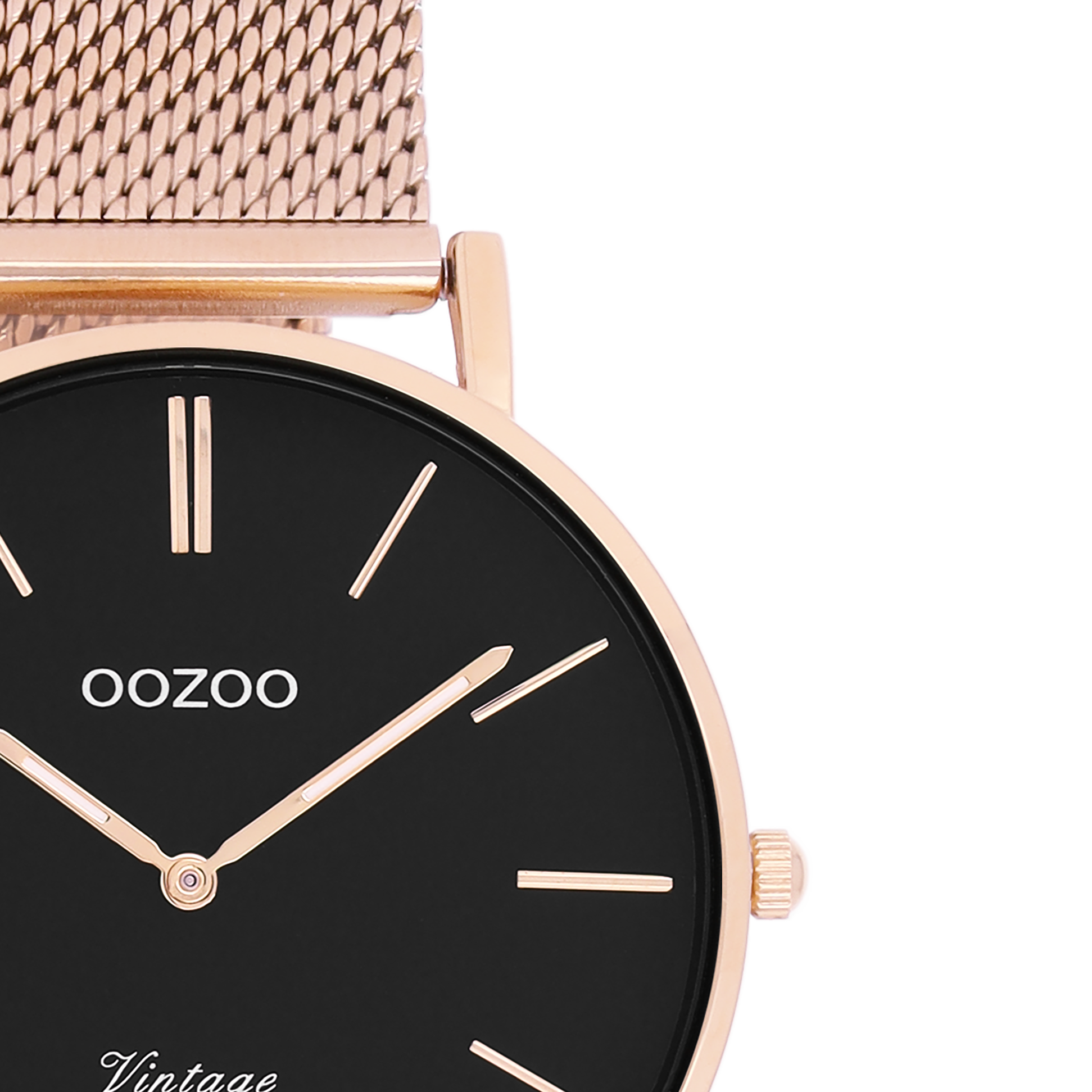 Rosé goudkleurige horloge met rosé goudkleurige metalen mesh armband