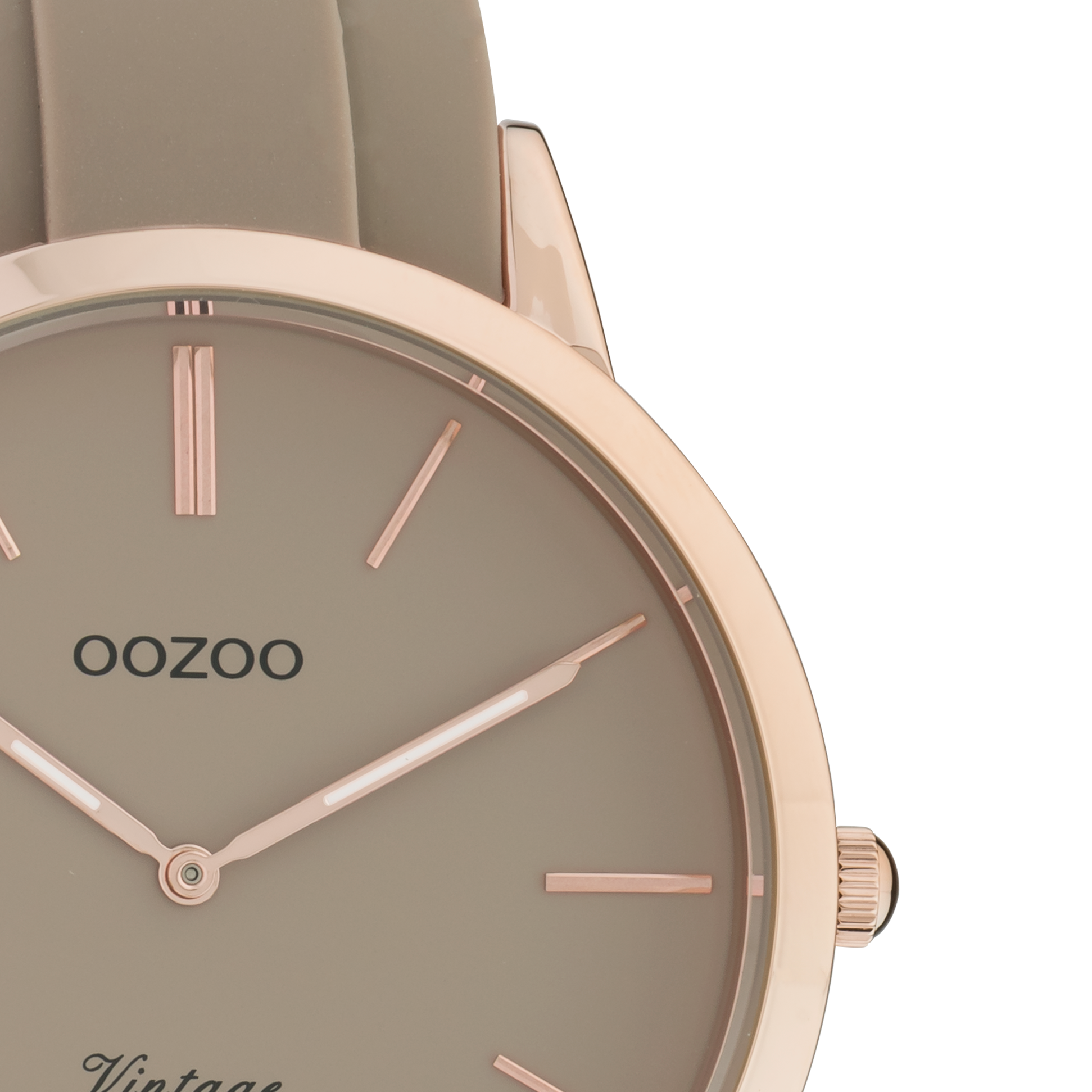 Rosé goudkleurige horloge met taupe rubber band