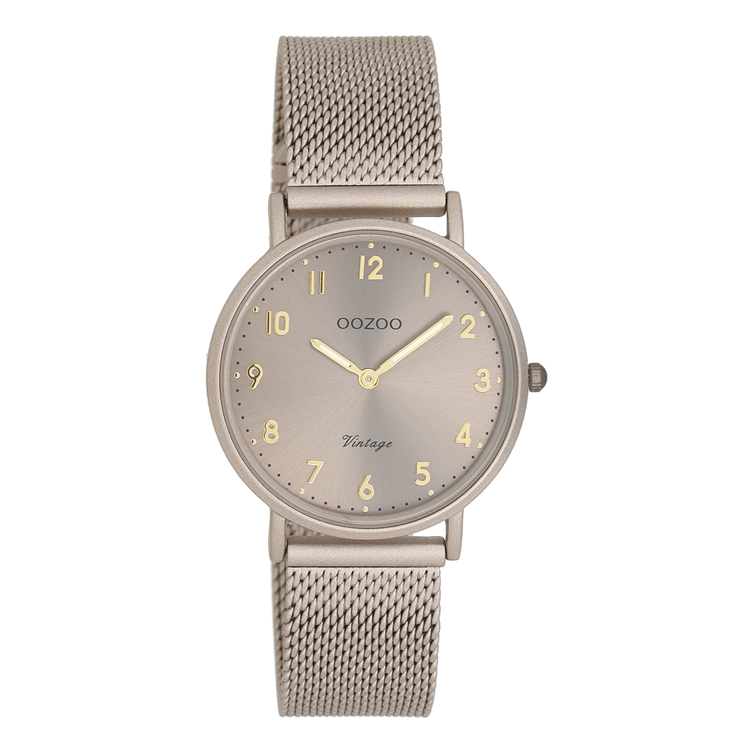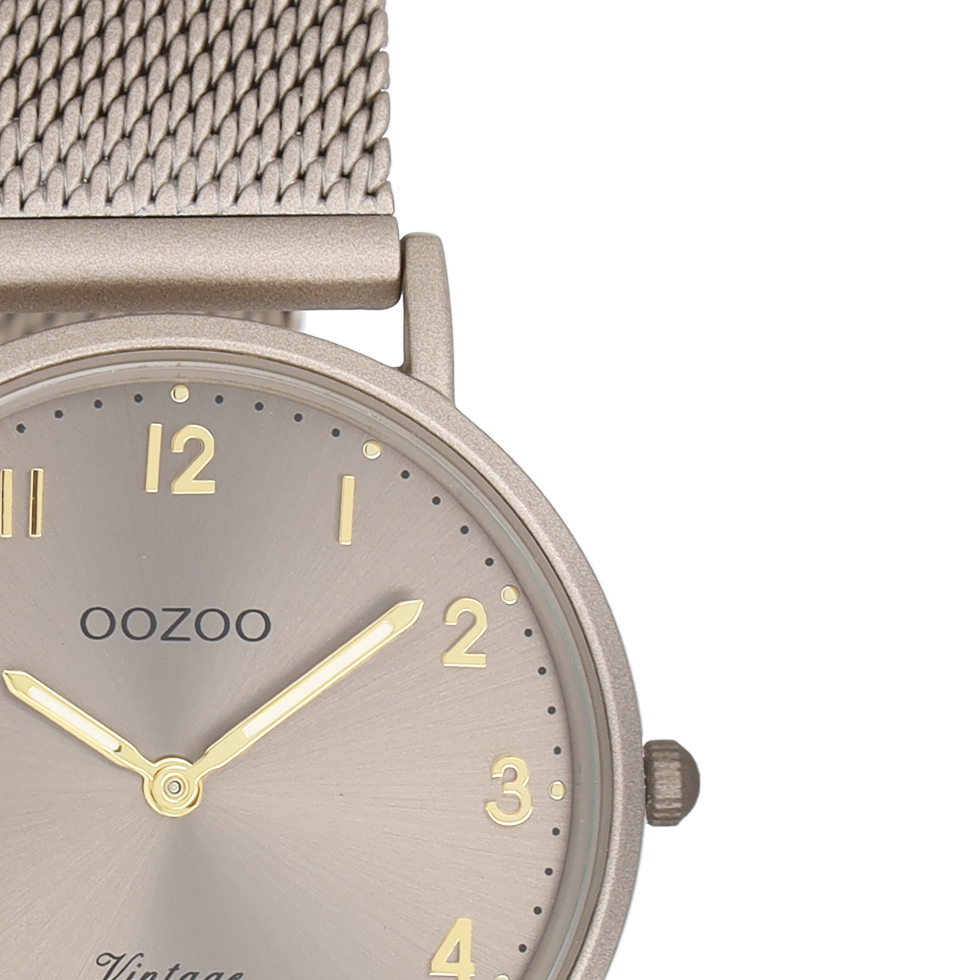 De klassieke look blijft centraal staan in deze trendy serie en daarom is dit OOZOO vintage ronde design met een speelse knipoog dé musthave van het seizoen! Dit unisex horloge is de perfecte combinatie van comfort en fashion met zijn 32 mm taupe matte horlogekast en taupe sunray wijzerplaat. De wijzerplaat heeft zwart/goudkleurige stippen en cijfers tijdsaanduidingen en goudkleurig/witte kleurige wijzers. De taupe matte metalen mesh armband maakt dit horloge tot een trendy accessoire dat je elke dag kunt dragen. Dit horloge voegt de sprankeling toe aan je outfit. Het mineraalglas ligt in een 6,5 mm dunne metalen horlogekast met IP-plating. De C20382 heeft een stainless steel achterplaat en is nikkel-safe. Dit horloge heeft een 2ATM Japans uurwerk en wordt gedekt door een garantie van 2 jaar (zie sectie 3 van onze Refund, shipping & warranty policy).