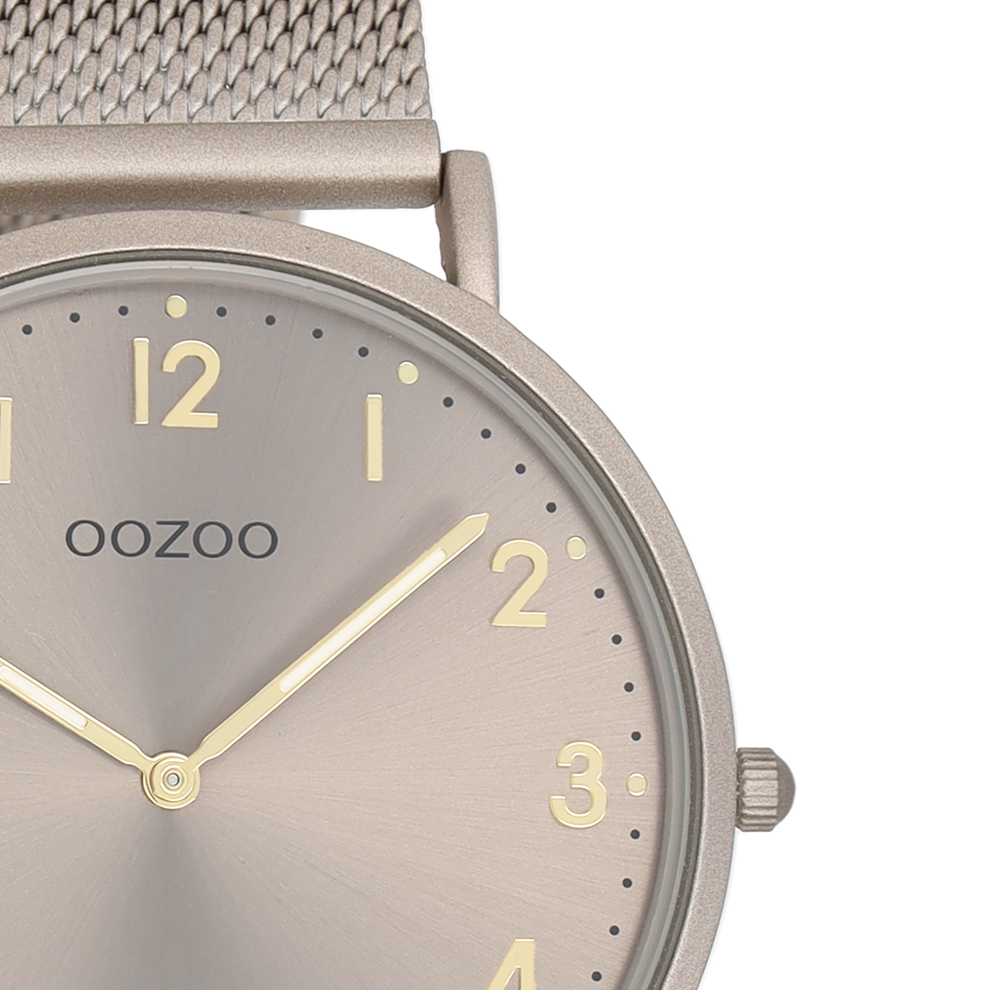 Taupe horloge met taupe metalen mesh armband