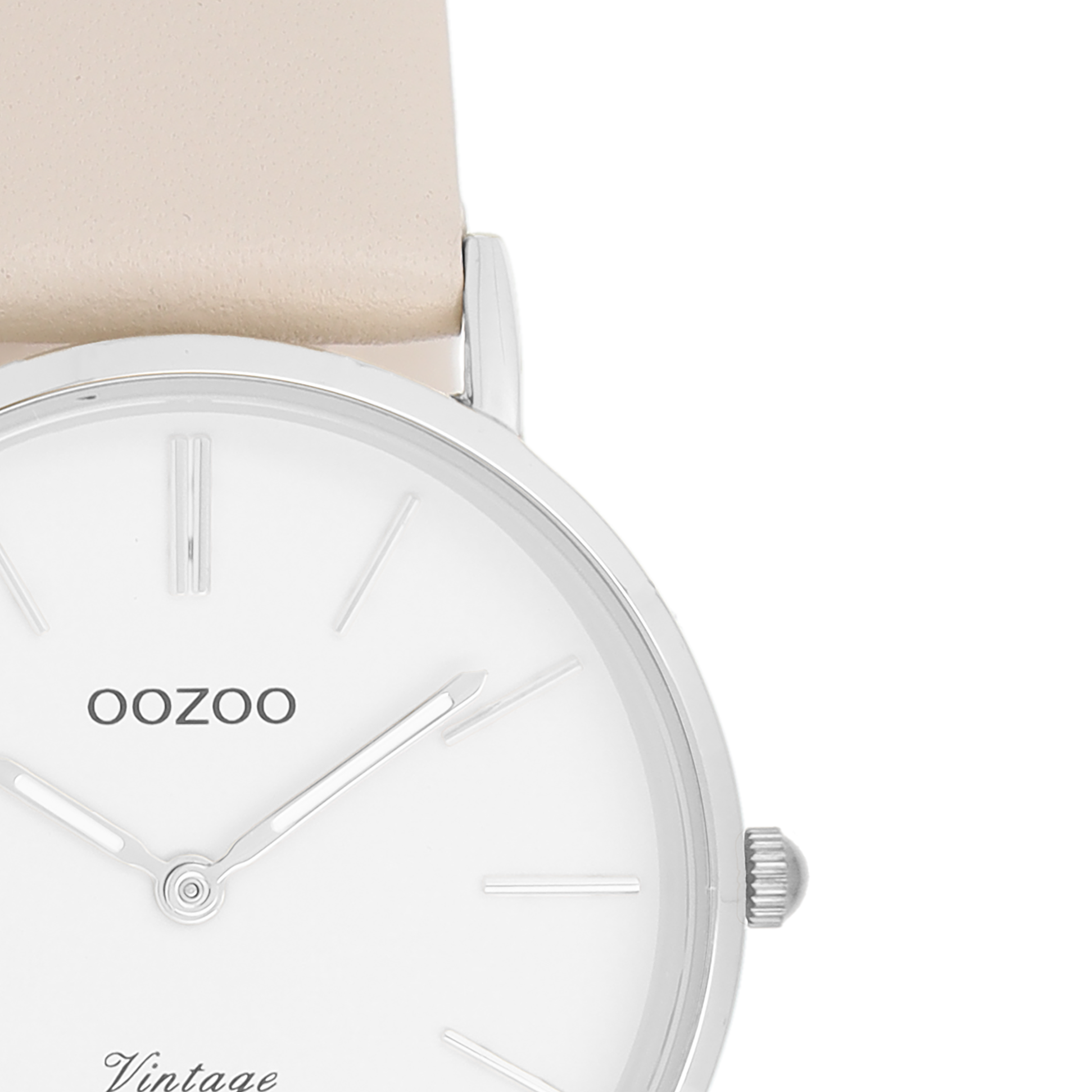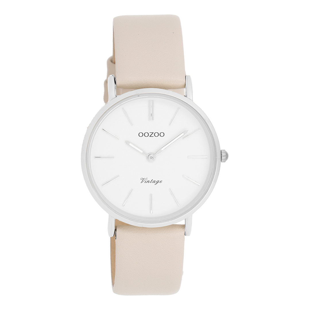 De klassieke look blijft centraal staan in deze trendy serie en daarom is dit OOZOO vintage ronde design met een speelse knipoog dé musthave van het seizoen! Dit unisex horloge is de perfecte combinatie van comfort en fashion met zijn 32 mm zilverkleurige metalen horlogekast en witte wijzerplaat. De wijzerplaat heeft zilverkleurige strepen tijdsaanduidingen en bijpassende kleurige wijzers. De beige leren band maakt dit horloge tot een trendy accessoire dat je elke dag kunt dragen. Dit horloge voegt de sprankeling toe aan je outfit. Het mineraalglas ligt in een 6,6 mm dunne metalen horlogekast met IP-plating. De C20391 heeft een stainless steel achterplaat en is nikkel-safe. Dit horloge heeft een 2ATM Japans uurwerk en wordt gedekt door een garantie van 2 jaar (zie sectie 3 van onze Refund, shipping & warranty policy).
