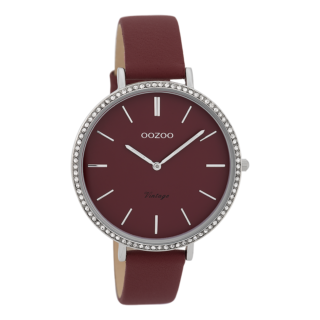 De klassieke look blijft centraal staan in deze trendy serie en daarom is dit OOZOO vintage ronde design met een speelse knipoog dé musthave van het seizoen! Dit dames horloge is de perfecte combinatie van comfort en fashion met zijn 40 mm zilverkleurige metalen horlogekast en bordeaux rode wijzerplaat. De wijzerplaat heeft zilverkleurige strepen tijdsaanduidingen en bijpassende kleurige wijzers. De bordeaux rode leren band maakt dit horloge tot een trendy accessoire dat je elke dag kunt dragen. Dit horloge voegt de sprankeling toe aan je outfit. Het mineraalglas ligt in een 6,9 mm dunne metalen horlogekast met IP-plating. De C9802 heeft een stainless steel achterplaat en is nikkel-safe. Dit horloge heeft een 2 Japans uurwerk en wordt gedekt door een garantie van 2 jaar (zie sectie 3 van onze Refund, shipping & warranty policy).