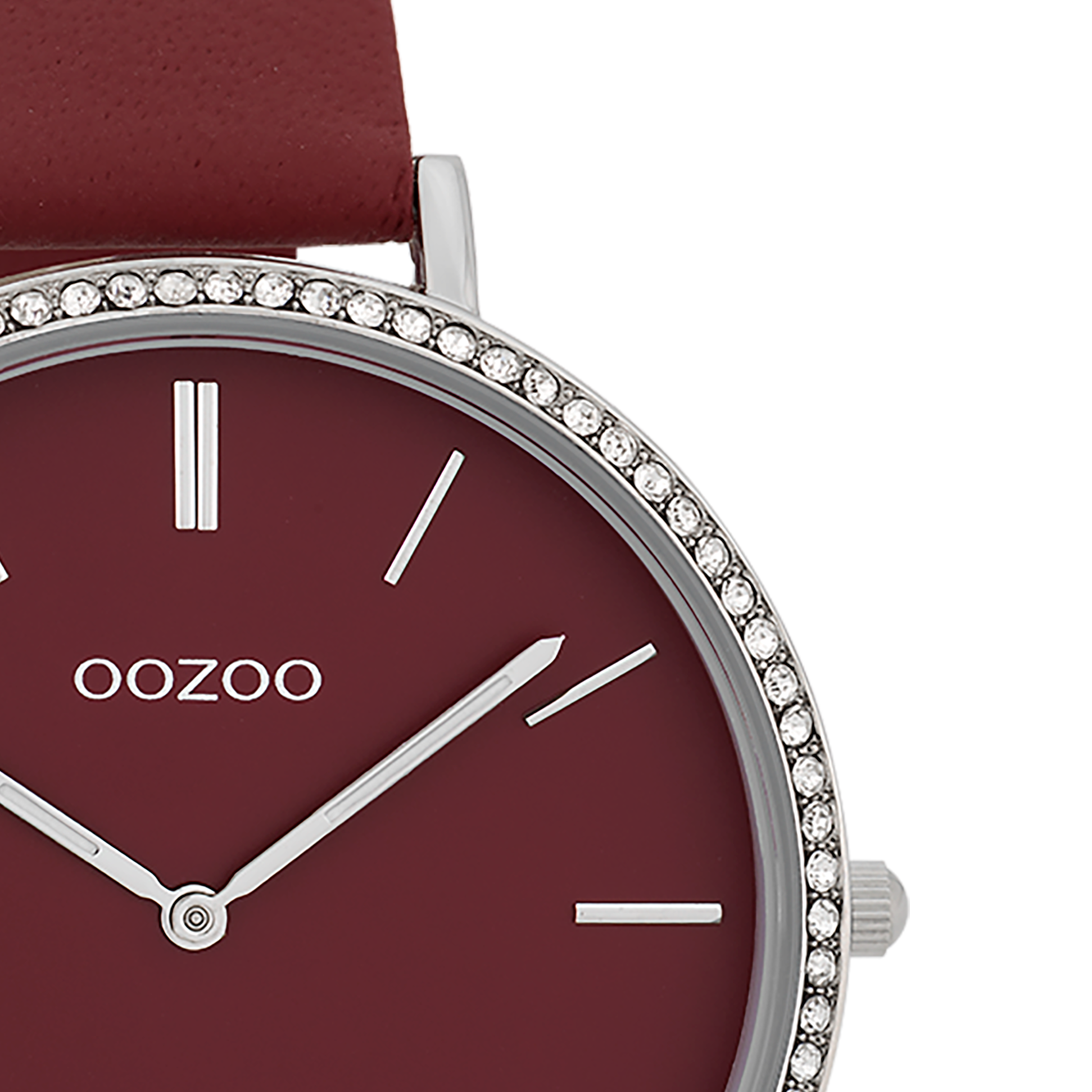 Zilverkleurige horloge met bordeaux rode leren band