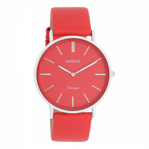 De klassieke look blijft centraal staan in deze trendy serie en daarom is dit OOZOO vintage ronde design met een speelse knipoog dé musthave van het seizoen! Dit dames horloge is de perfecte combinatie van comfort en fashion met zijn 40 mm zilverkleurige metalen horlogekast en chili peper rode wijzerplaat. De wijzerplaat heeft zilverkleurige strepen tijdsaanduidingen en bijpassende kleurige wijzers. De chili peper rode leren band maakt dit horloge tot een trendy accessoire dat je elke dag kunt dragen. Dit horloge voegt de sprankeling toe aan je outfit. Het mineraalglas ligt in een 6,9 mm dunne metalen horlogekast met IP-plating. De C20324 heeft een stainless steel achterplaat en is nikkel-safe. Dit horloge heeft een 2ATM Japans uurwerk en wordt gedekt door een garantie van 2 jaar (zie sectie 3 van onze Refund, shipping & warranty policy).