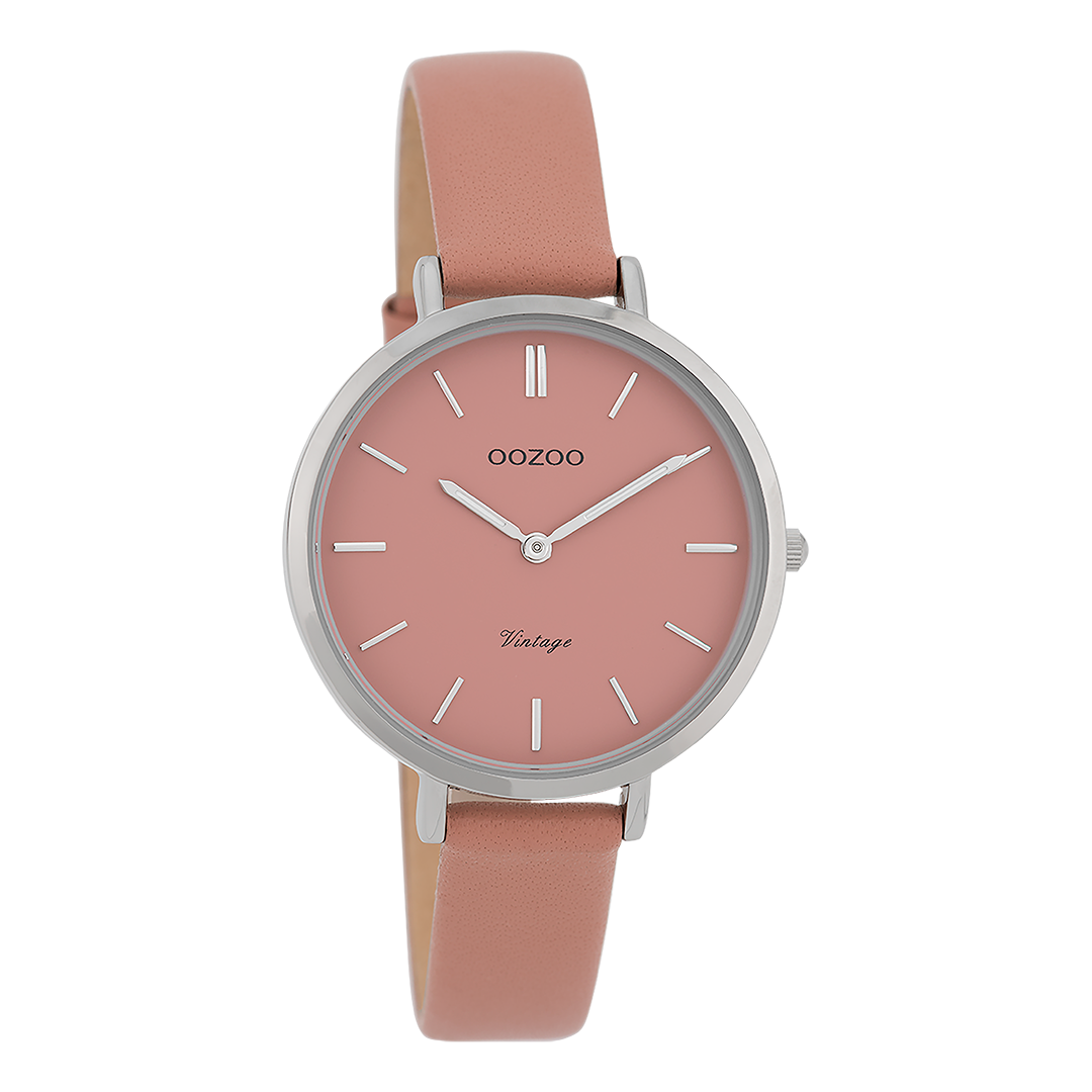De klassieke look blijft centraal staan in deze trendy serie en daarom is dit OOZOO vintage ronde design met een speelse knipoog dé musthave van het seizoen! Dit dames horloge is de perfecte combinatie van comfort en fashion met zijn 34 mm zilverkleurige metalen horlogekast en warm roze wijzerplaat. De wijzerplaat heeft zilverkleurige strepen tijdsaanduidingen en zilverkleurige kleurige wijzers. De warm roze leren band maakt dit horloge tot een trendy accessoire dat je elke dag kunt dragen. Dit horloge voegt de sprankeling toe aan je outfit. Het mineraalglas ligt in een 6,9 mm dunne metalen horlogekast met IP-plating. De C9812 heeft een stainless steel achterplaat en is nikkel-safe. Dit horloge heeft een 2 Japans uurwerk en wordt gedekt door een garantie van 2 jaar (zie sectie 3 van onze Refund, shipping & warranty policy).