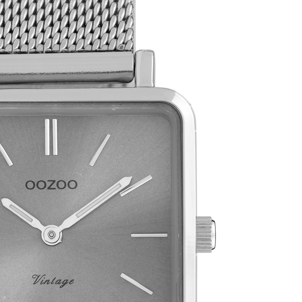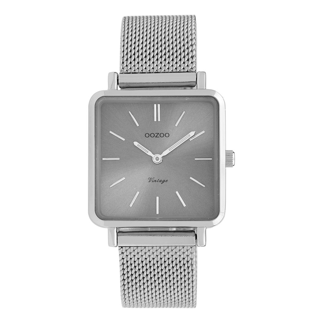Verfijning en elegantie zijn de twee sleutelelementen van deze prachtige OOZOO Vintage series. Dit klassieke vierkante model past bij iedereen. Dit unisex horloge is de perfecte combinatie van comfort en fashion met zijn 28 mm zilverkleurige metalen horlogekast en donker grijze wijzerplaat. De zilverkleurige metalen mesh armband maakt dit horloge tot een all-time classic welke je bij iedere gelegenheid kunt dragen. De wijzerplaat heeft zilverkleurige strepen tijdsaanduidingen en bijpassende kleurige wijzers. Dit model is een must-have voor jouw dagelijkse garderobe. Het mineraalglas ligt in een 6,9 mm dunne metalen horlogekast met IP-plating. De C9842 heeft een stainless steel achterplaat en is nikkel-safe. Dit horloge heeft een 2 Japans uurwerk en wordt gedekt door een garantie van 2 jaar (zie sectie 3 van onze Refund, shipping & warranty policy).