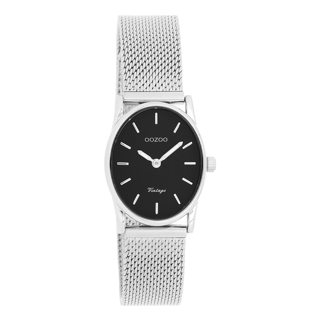 De klassieke look blijft centraal staan in deze trendy serie en daarom is dit OOZOO vintage ovale design met een speelse knipoog dé musthave van het seizoen! Dit dames horloge is de perfecte combinatie van comfort en fashion met zijn 28×22,5 mm zilverkleurige metalen horlogekast en zwarte wijzerplaat. De wijzerplaat heeft zilverkleurige strepen tijdsaanduidingen en zilverkleurige kleurige wijzers. De zilverkleurige glanzende metalen mesh armband maakt dit horloge tot een trendy accessoire dat je elke dag kunt dragen. Dit horloge voegt de sprankeling toe aan je outfit. Het mineraalglas ligt in een 6,9 mm dunne metalen horlogekast met IP-plating. De C20257 heeft een stainless steel achterplaat en is nikkel-safe. Dit horloge heeft een 2 Japans uurwerk en wordt gedekt door een garantie van 2 jaar (zie sectie 3 van onze Refund, shipping & warranty policy).
