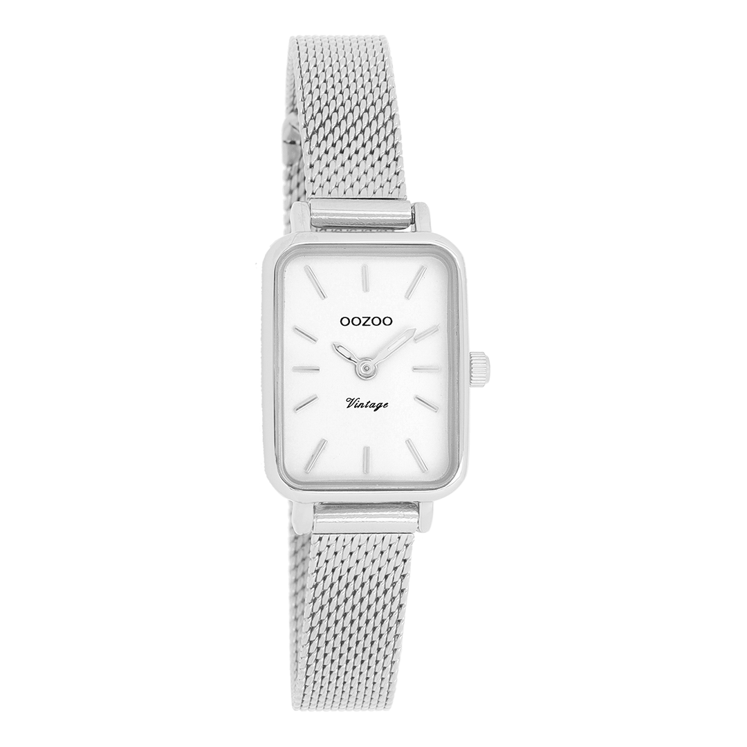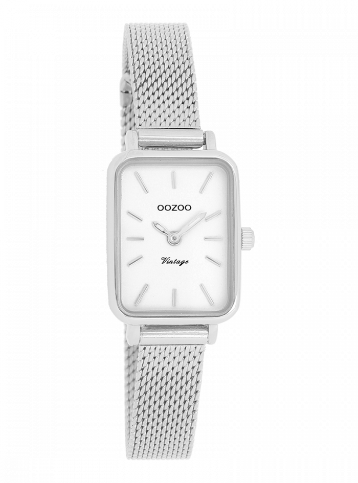 De klassieke look blijft centraal staan in deze trendy serie en daarom is dit OOZOO vintage rechthoekig design met een speelse knipoog dé musthave van het seizoen! Dit dames horloge is de perfecte combinatie van comfort en fashion met zijn 26×21 mm zilverkleurige metalen horlogekast en witte wijzerplaat. De wijzerplaat heeft zilverkleurige strepen tijdsaanduidingen en zilverkleurige kleurige wijzers. De zilverkleurige glanzende metalen mesh armband maakt dit horloge tot een trendy accessoire dat je elke dag kunt dragen. Dit horloge voegt de sprankeling toe aan je outfit. Het mineraalglas ligt in een 6,9 mm dunne metalen horlogekast met IP-plating. De C20266 heeft een stainless steel achterplaat en is nikkel-safe. Dit horloge heeft een 2 Japans uurwerk en wordt gedekt door een garantie van 2 jaar (zie sectie 3 van onze Refund, shipping & warranty policy).