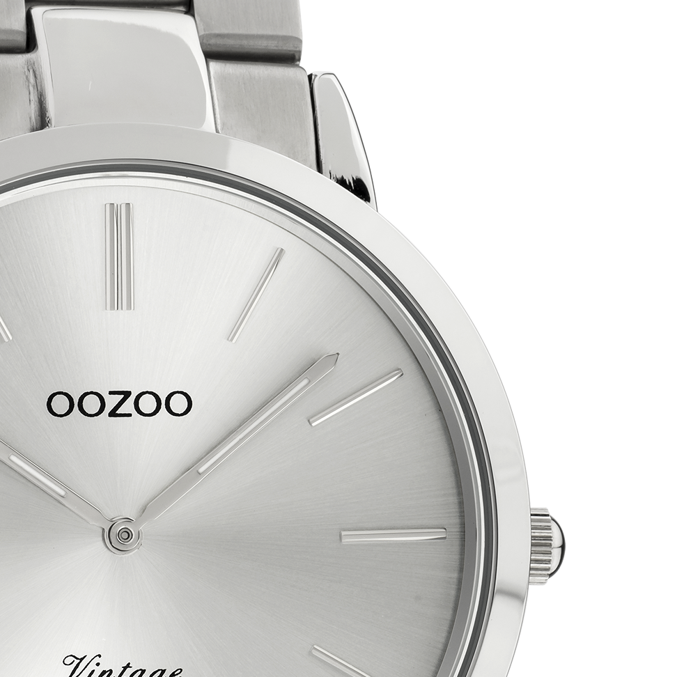 Verfijning en elegantie zijn de twee sleutelelementen van deze prachtige OOZOO Vintage series. Dit klassieke ronde model past bij iedereen. Dit unisex horloge is de perfecte combinatie van comfort en fashion met zijn 42 mm zilverkleurige metalen horlogekast en zilverkleurige met sunray wijzerplaat. De zilverkleurige mat/glanzende roestvrijstalen armband maakt dit horloge tot een all-time classic welke je bij iedere gelegenheid kunt dragen. De wijzerplaat heeft zilverkleurige strepen tijdsaanduidingen en bijpassende kleurige wijzers. Dit model is een must-have voor jouw dagelijkse garderobe. Het mineraalglas ligt in een 6,9 mm dunne metalen horlogekast met IP-plating. De C20100 heeft een stainless steel achterplaat en is nikkel-safe. Dit horloge heeft een 2 Japans uurwerk en wordt gedekt door een garantie van 2 jaar (zie sectie 3 van onze Refund, shipping & warranty policy).