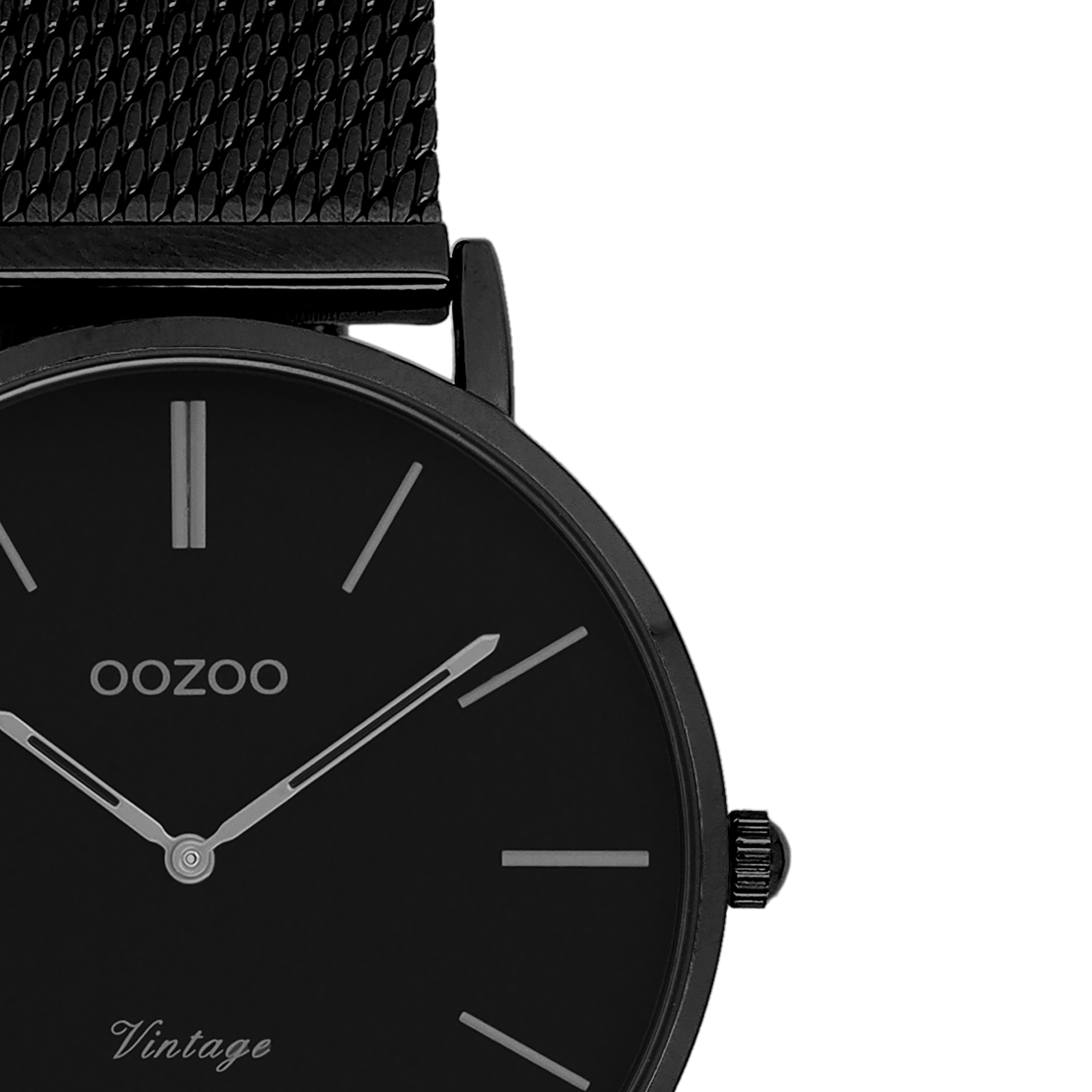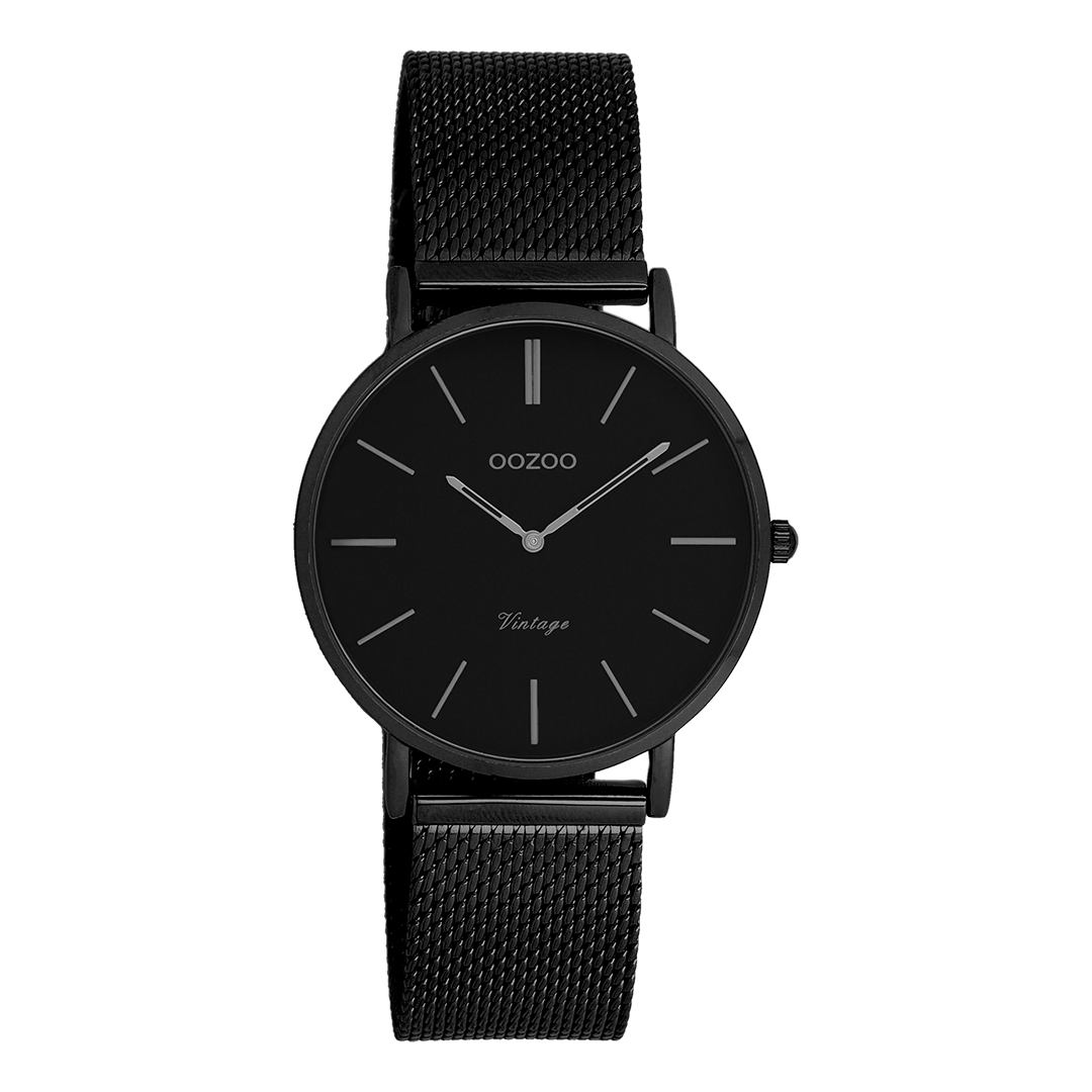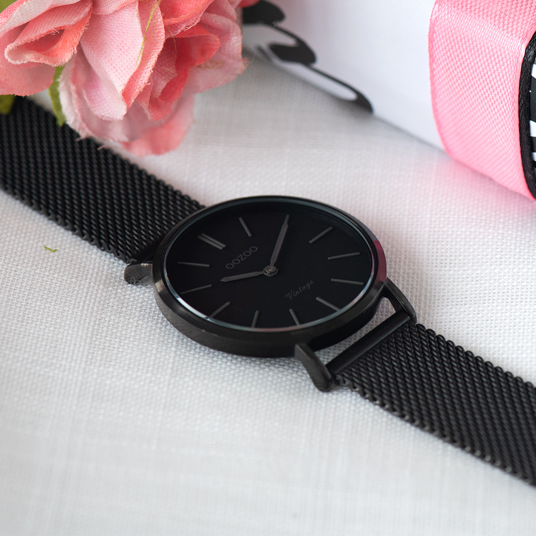 Zwarte horloge met zwarte metalen mesh armband